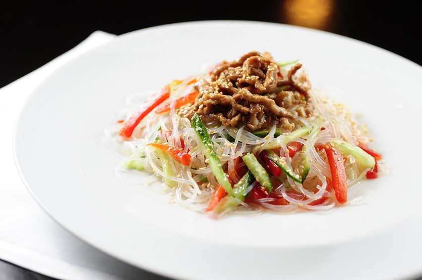 Лапша из крахмала не имеет собственного яркого вкуса, но отлично впитывает запах и вкус других продуктов и считается идеальным гарниром для блюд из мяса и морепродуктов. При варке лапшу не солят, а добавляют все специи в соус, который подают в отдельной посуде.